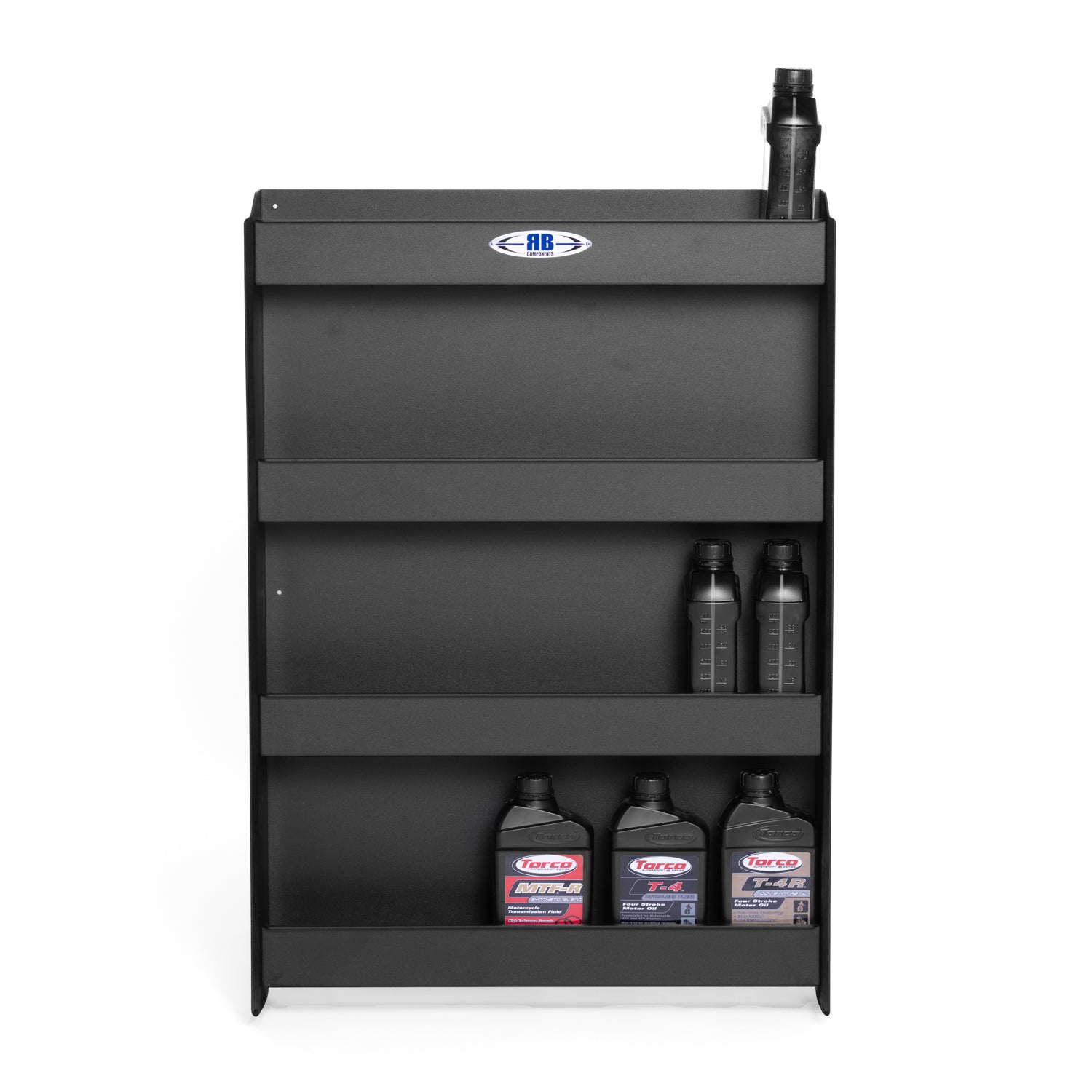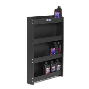 The RB Components Oil Storage Cabinet provides a durable, space-efficient solution for organizing oil products, filters, and aerosols in service vans, trailers, or shop environments. Designed to keep everything secure and accessible, each shelf holds items snugly in place during transport—reducing clutter and keeping essential supplies organized.